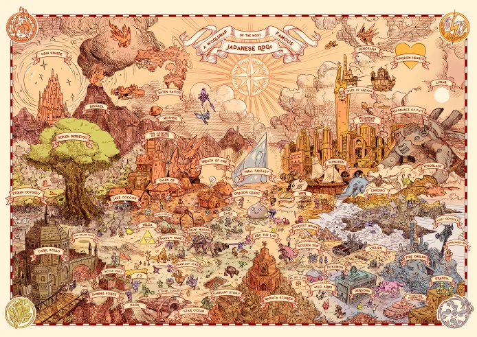 The player is the real adventurer in this case. He embodies a character transported into a fictional world and through his actions, his choices and his emotional involvement, the experience is multiplied tenfold. The world is in peril and the player can save it. Through all these aspects, RPGs have become the perfect marriage between manga/anime, a genre known for using a light tone in order to tell us about the deepest things, books (look at the massive script of Xenogears), movies and music. They are an ideal ground for the fertile games of the imagination. They allow one to escape from reality without being alienated by an overly imposing medium. One is not forced into the story as with a book that one can close to daydream and let the material sink in. Each of these works is an authentically personal experience because it takes place partly in the imagination of the player. The RPG Worldmap is a tribute to all the masterpieces from what I consider to be the golden age of JRPGs, which spans from the late 16-bit consoles to the Playstation 2 era, with a few more modern exceptions. The mass arrival of mediocre video games overshadows the few quality games in which you really have to invest time to enjoy the experience. The players’ attention span is now so short that they can only fall back on games with immediate gratification. Whatever happened to the poetry in our games?