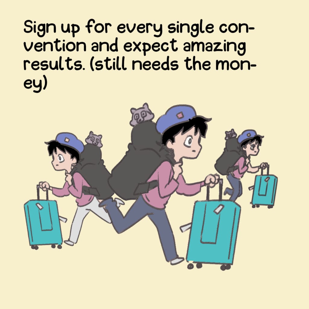 Blog My Worst Artist Alley Tips by nayth|Published October 29, 2025A parody comic sharing the absolute worst advice artists give each other before conventions — don’t try this at home.